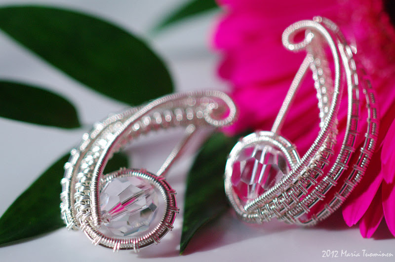 Eli matskuina 925 sterling hopea ja mahtavat 12 milliset swarovskit (en ole ennen nähnyt näin isoja swaroja!). Ohje on peräisin Jewelry Lessons -sivustolta, löytyy nimellä Nautical Neptune Earring (or pendant). Ohje oli selkeä ja hyvä. :) Luulen, että tulen tekemään tällaiset vielä kuparistakin, ovat sen verran nätit ainakin omasta mielestäni.